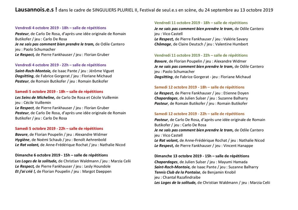 Pour savoir qui joue quel texte, quel jour et à quelle heure, merci de vous reporter au tableau ci-contre!