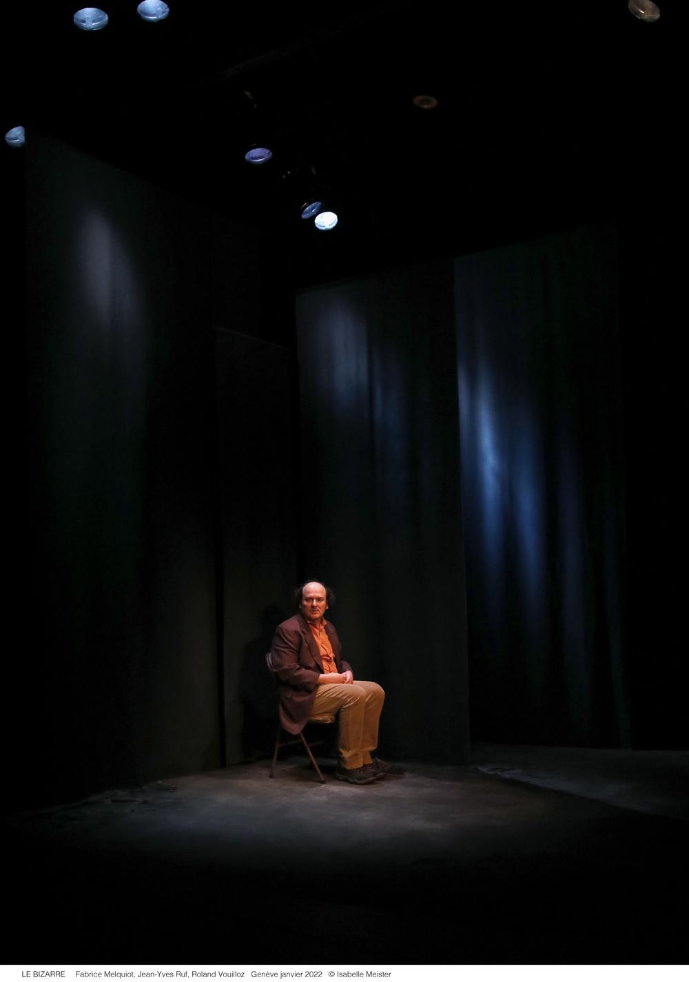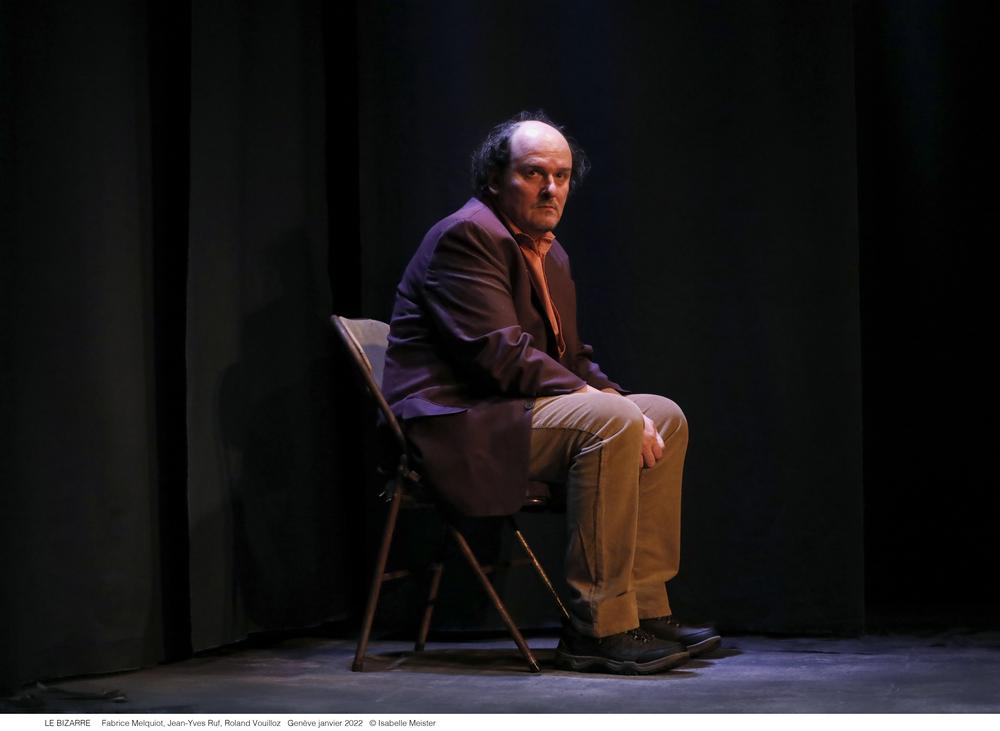 Flux de mots drôles, absurdes, profonds, habités par l'idée de la mort. Paroles intimes, solitaires et grinçantes. Le monde du Bizarre ne tient peut-être que sur cette parole incessante qui le maintien encore debout. Se raconter pour mieux exister. Roland Vouilloz a demandé à Jean-Yves Ruf de le diriger dans la traversée de ce monologue intérieur écrit par l’auteur Fabrice Melquiot.