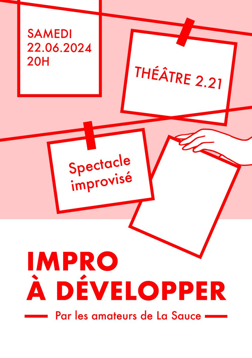 Une envie de voir vos photos sous un nouvel angle ?... Apportez-en une de votre choix et laissez les dix improvisateurs de La Sauce s'en inspirer pour vous transporter dans des univers aussi variés qu'inattendus ! Pour cela, rendez-vous le samedi 22 juin, à 20h, à la salle du 2.21 à Lausanne. On vous y attend nombreux !